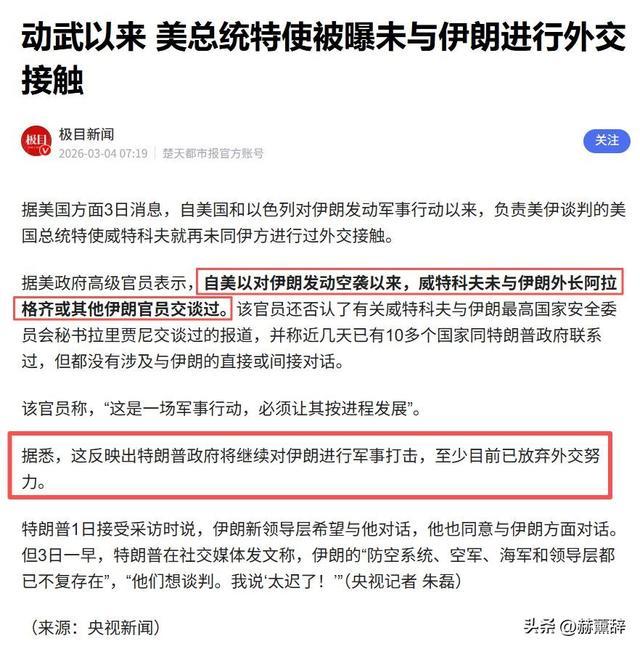 这种含糊其辞的公关词汇更像是一种此地无银,事实上,早在2月26日,即大规模空袭爆发的前两天,特朗普政府便已通过秘密特使同伊方展开了间接层面的试探,这种一面挥舞大棒、一面递出橄榄枝的多面策略,难免令身处前线的以色列感到寒意。